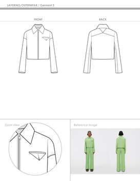 A project that showcases three tops, bottoms, and outerwear pieces to create detailed garment flats. These flats provide a clear and accurate representation of each piece, allowing for easy visualization and communication.